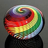 4. Bu aşamada biraz daha soğuk olan toplanmış cam, düzenli şekilde bir araya getirilmiş renkli cam çubuklar ile hazırlanan bir kalıba sokulur ve üflenir, çubuklar cama yapışır.